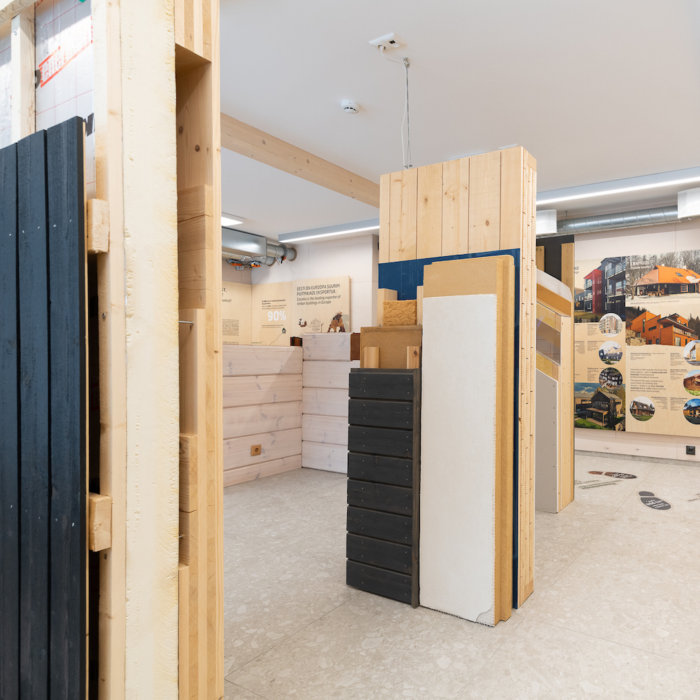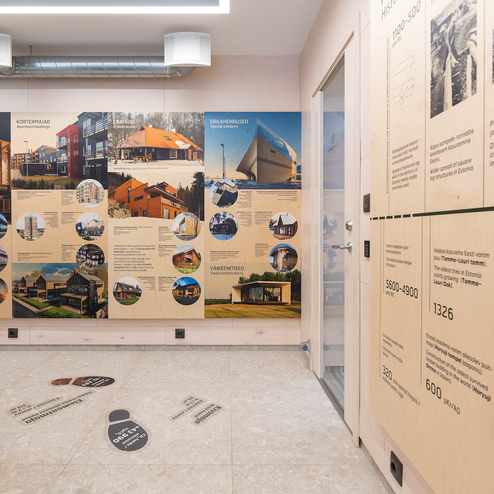 Siia on koondatud puitmajasektori kompaktne info – saab hea ülevaate erinevatest puitehituse tehnoloogiatest (puitkarkass, masintoodetud ja käsitöö palkmaja ning ristkihtpuit CLT või MHM), materjalide kasutamisest ja viimistluse võimalustest. Lisaks puitmajade tehnoloogilistele võimalustele saab näituseruumis tutvuda ka Eestis toodetud majade arhitektuursete lahendustega, heita pilk Eesti puitehituse arengule ning mõtiskleda ehitussektori süsinikujalajälje teemadel.